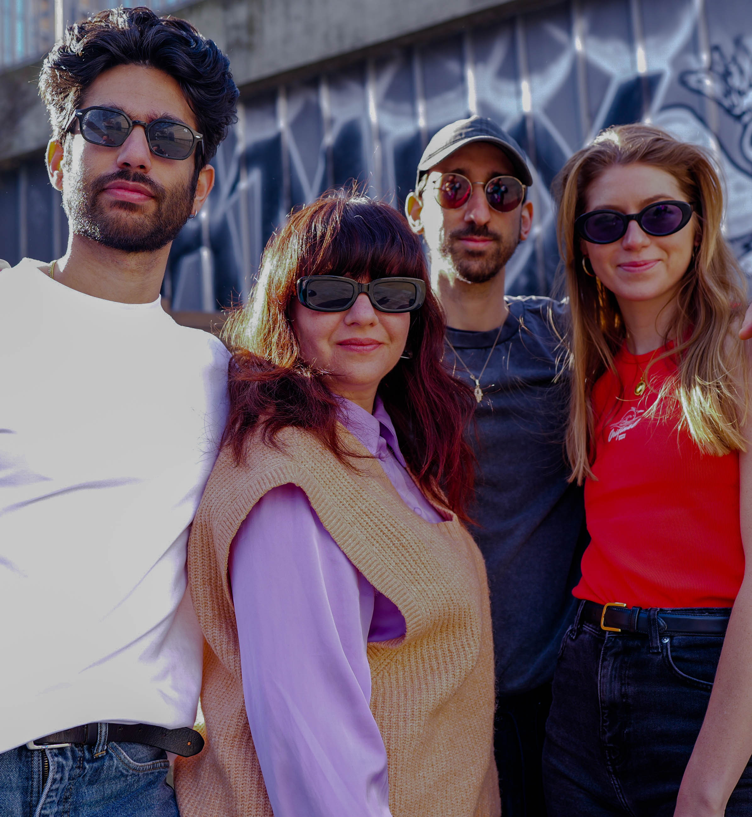 Moriah Plaza co-founders Tamir Chen (bass) and Moosh Lahav (keys, flute) grew up in Tel Aviv in the nineties, falling in love with the hypnotic sounds of Brazilian music, film soundtracks, elevator muzak, and even the Sheraton Moriah’s hotel pianist where Tamir’s mother worked, overlooking the Dead Sea waves.